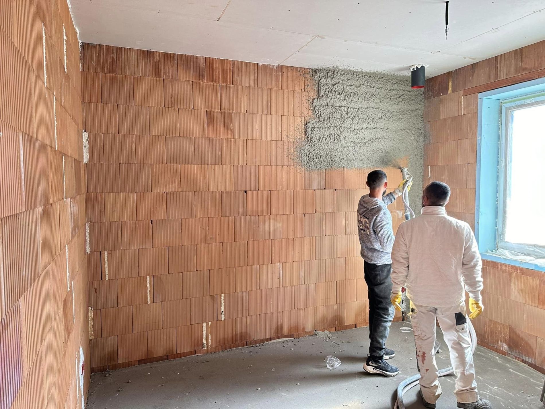 Az épületünk minden belső helyisége 2 réteg szórt gépi glettelést és csiszolást kap,