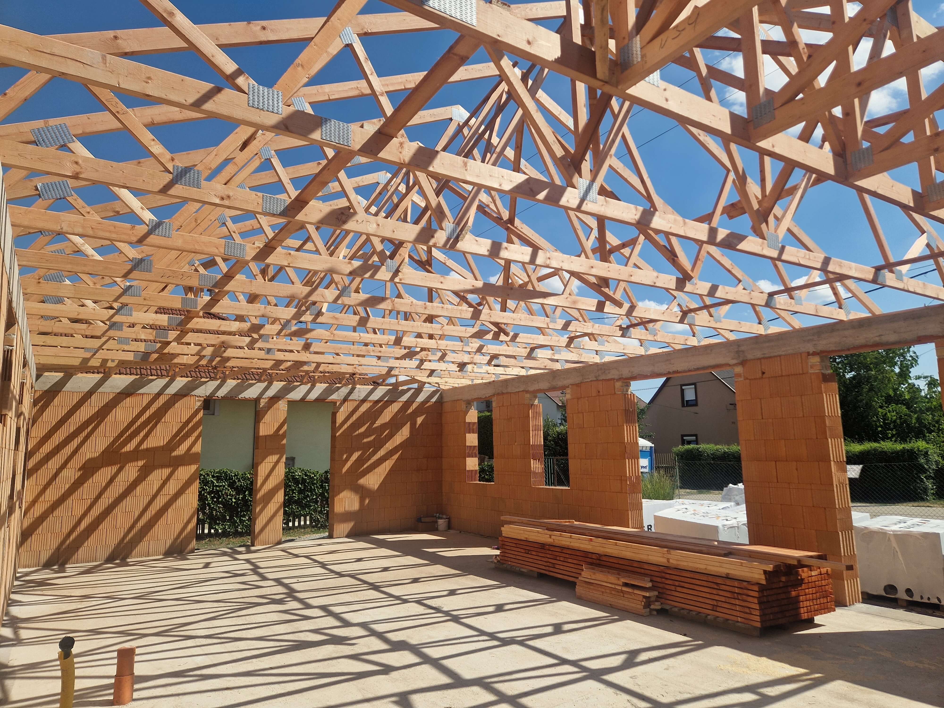 Csapatunk kizárólag tégla lakóépület építésével foglalkozik, Porotherm 30 N+F Rapid csiszolt téglából, betonalappal, szeglemezes rácsos tetőszerkezettel és 15-20 cm homlokzati hőszigeteléssel.