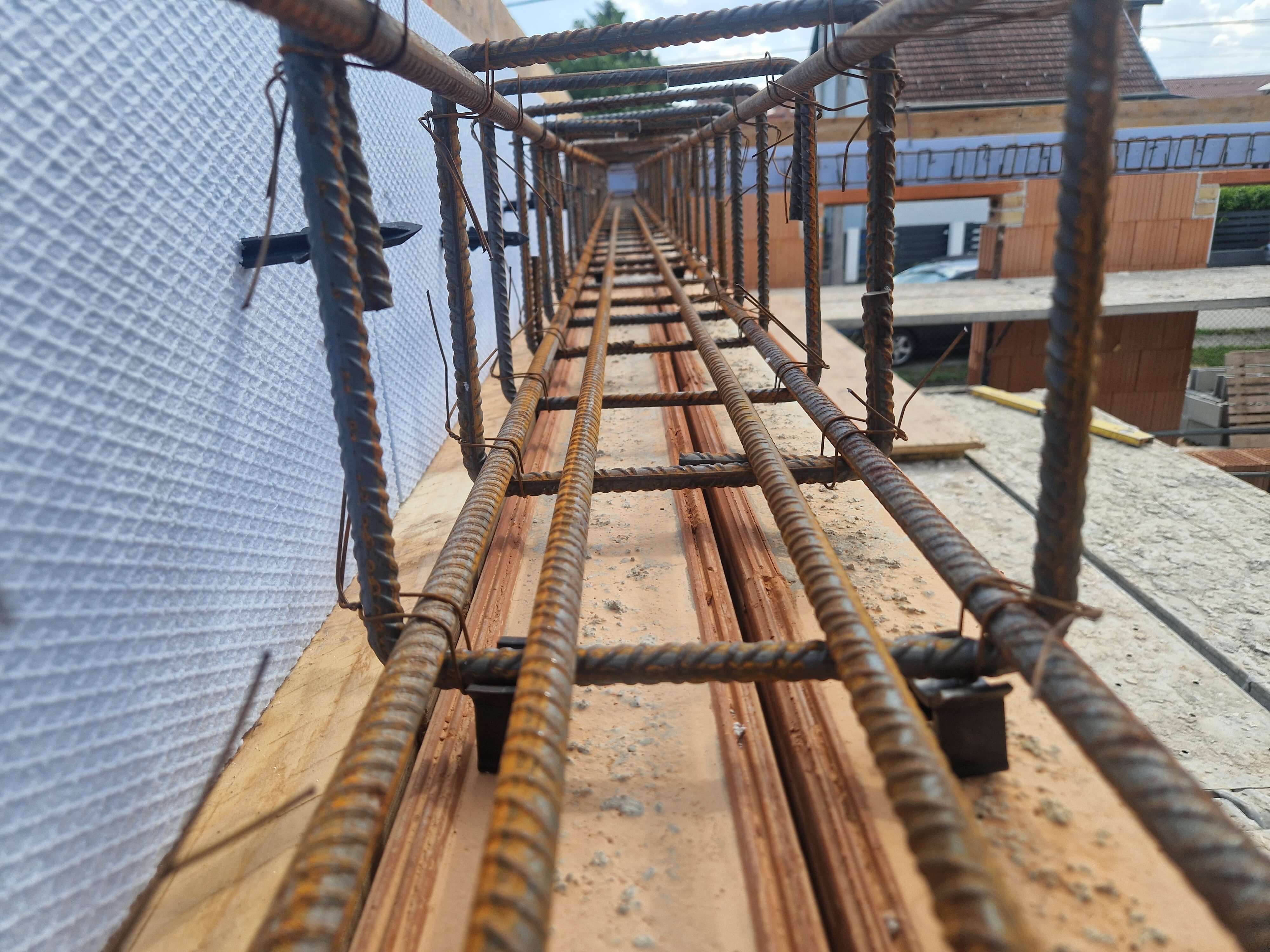 A főfalak felett monolit vasbeton koszorút készítünk a tartószerkezeti tervező által